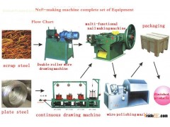 With the rapid growth of national economy, the continuous improvement of individual living quality, the demanding for iron nail, steel nail is larger. It has taken over two years for our plant to develop series of waste, finished products dual purpose full-automatic nail making machines. Since those machines are put on the market, they were highly received by many customers. They gained higher profit by using these equipments. Since, at present a lot of nails in the market are made from finished wire(plate steel), whose cost is high, profit is low, power consumption is big. While the iron nail and steel nail are made from scrap steel, cold wire drawing, ribbed steel, packed wire etc. And the profit is the price difference between finished wire(plate steel) and scrap steel.
