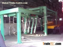 The precuring body will be hanged by the fixed-point bridge crane on the overturning platform to take off the mould frame, by the hydraulic mechanism overturning platform is turn over 90 ° , then from the longitudinal cutting agencies and transverse cutting agencies to complete the six-side cutting, after cutting body turn over 90° By a hydraulic mechanism back in place, complete a cutting cycle.